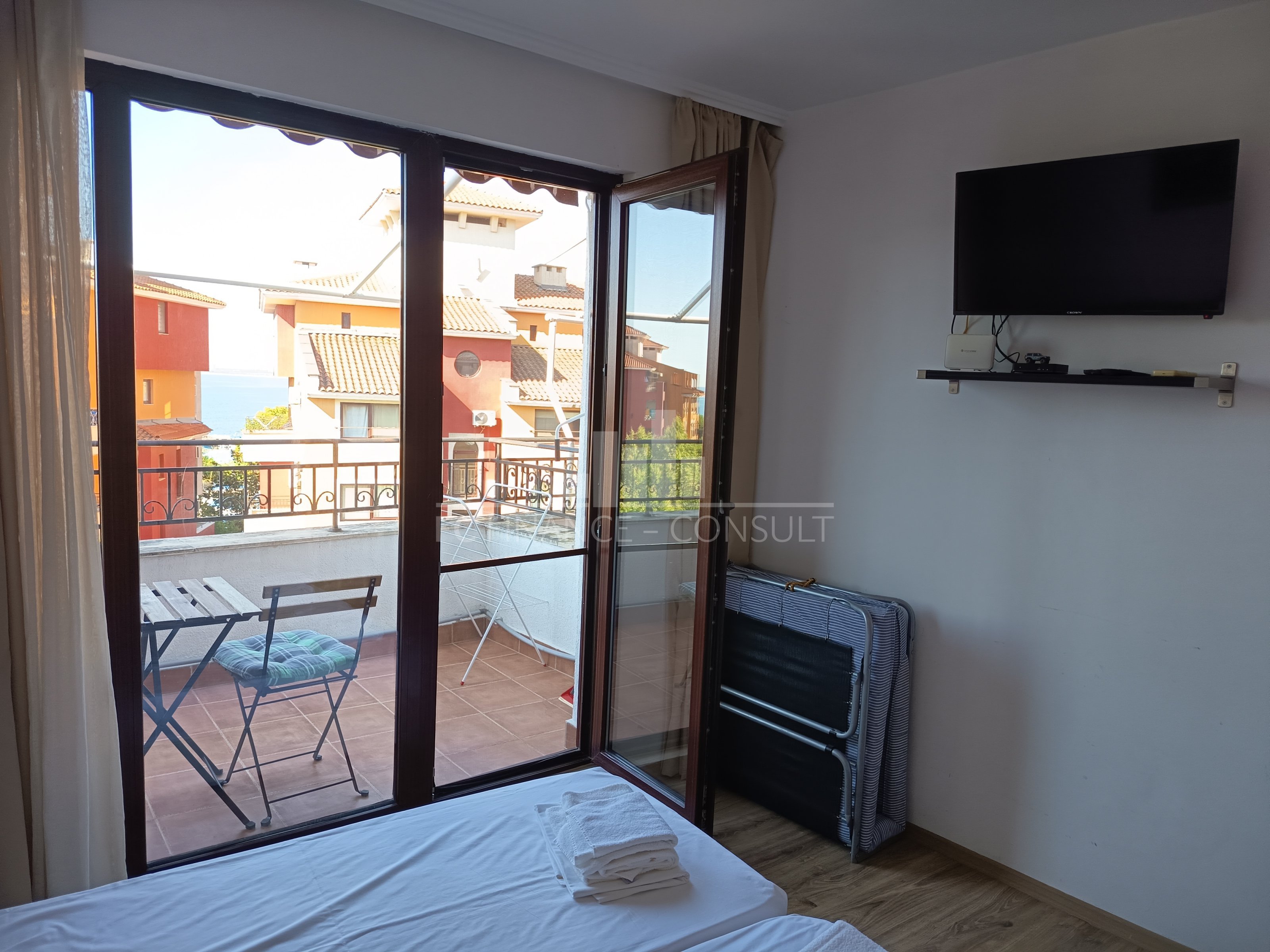 Studio avec kitchenette, offrant une vue sur la mer, d’une superficie de 34 m², situé dans un complexe de vacances privé et entièrement équipé, au 4ᵉ étage d’un immeuble de cinq étages. De plus en plus de personnes travaillent à distance et recherchent un lieu où elles peuvent combiner travail, qualité de vie et coûts raisonnables. La Bulgarie — en particulier Sunny Beach et Aheloy — offre des conditions idéales non seulement pour les nomades numériques, mais aussi pour les personnes percevant une pension ou une retraite, ainsi que pour celles qui souhaitent disposer d’un endroit calme au bord de la mer, semblable à un chalet — mais avec un climat bien plus agréable. La mer littéralement à quelques pas de votre bureau. À Aheloy, les appartements sont situés directement sur la plage, dans un complexe moderne à environ 15 minutes en voiture de l’aéroport de Bourgas. Le complexe se trouve le long de l’une des plus belles plages de sable de la région, comprenant également un petit port de plaisance avec des bateaux de pêche. Les équipements sur place comprennent: 4 restaurants; cafés et bars; 2 piscines et un bar aquatique; centre sportif, courts de squash; salle de sport, centre bien-être & SPA, massages; cabinets de médecin généraliste et de dentiste; supermarché et petits commerces; Les baignades matinales dans la mer, le travail en ligne pendant la journée et les promenades en soirée le long de la côte deviennent ici une partie naturelle du quotidien. Sunny Beach offre quant à elle une ambiance plus animée, avec des restaurants, cafés et services disponibles toute l’année. Coûts réduits - idéals pour le travail à distance et la détente: Location longue durée à partir de 220 € par mois; Conditions de paiement: 3 mois d’avance + 1 caution remboursable; Internet et télévision (environ 150 chaînes) disponibles avec supplément; Eau et électricité facturées selon la consommation réelle; Parking gratuit avec possibilité de laisser le véhicule toute l’année; Possibilité de location longue durée de notre véhicule; Les coûts globaux restent nettement inférieurs à ceux de la majorité des destinations balnéaires européennes, ce qui est particulièrement apprécié par les freelances, les entrepreneurs en ligne, les seniors et les personnes recherchant un mode de vie plus paisible. Les appartements sont entièrement meublés, avec cuisine et tous les appareils électroménagers nécessaires. Types d’appartements actuellement disponibles: studios; appartements avec une chambre et kitchenette; appartements avec deux chambres et kitchenette. Les appartements conviennent aux personnes seules, aux couples, aux familles, aux collègues travaillant à distance ainsi qu’aux retraités ou pensionnés. Tout simplement pour tous ceux qui rêvent d’une vie meilleure — une vie au bord de la mer. Sunny Beach & Aheloy - excellente accessibilité. Excellentes liaisons de transport : aéroport, transports publics, réseau routier. Aéroport de Bourgas à seulement quelques minutes d’Aheloy et de Sunny Beach. Liaisons aériennes actives même hors saison ; aéroport de Varna à environ 80 km. Emplacement idéal : Nessebar, Sunny Beach, Aheloy, Pomorie, Sveti Vlas, Elenite — tous à quelques minutes les uns des autres. Tout à proximité de la ville de Bourgas. Excellentes infrastructures, sécurité et assistance multilingue continue. Écoles, jardins d’enfants, établissements de santé, bureau de poste, nombreux supermarchés, restaurants et services complets — en résumé, tout est littéralement à portée de main. Les appartements sont notre propriété privée, sans intermédiaires immobiliers — aucune commission à payer. Une assistance multilingue est assurée sur place toute l’année. De nombreux Européens vivent déjà ici à long terme — travaillant en ligne ou ayant trouvé un nouveau rythme de vie.