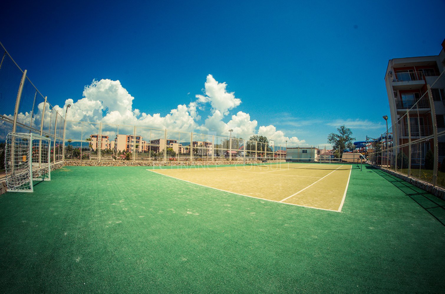 A vendre appartement 1 chambre vue, montagne et jardin dans la station balnéaire de Sunny beach en Bulgarie. Type de bien: 1 chambre • Description du bien: hall d’entrée, séjour coin cuisine, chambre, salle de bains avec WC, balcon • Dimensions: 47 m2 • Étage: 0/3 • Vues: jardin • 600 mètres plage • Parking: privé/public • Montant des charges: 13,50 eur/m2/an • Crédit vendeur 7 ans: non • Acompte mini: 100% payment • Location possible par agence immobilière avec retour sur investissement garanti par un gestionnaire • La résidence est situé à 600 m de la plage • La résidence dispose des équipements suivants: d’une réception (heure d’ouverture fonction de la saison), d’une salle de fitness (dont plein air), de piscines sécurisés avec mise à disposition de chaises longues (dont une pour enfants), d’un sauna, d’un spa, d’un club pour enfants, d’une salle de massage, de terrains de jeux pour enfants, de terrains de sport, d’un centre de santé, d’un terrain de tennis, de babyfoot, d’un mini-golf, d’un billard et d’une table de ping-pong • La résidence offre également les services suivants: un restaurant proposant une cuisine de type bulgare/européenne, de magasins d’alimentation et d’accessoires pour la plage, d’un service de location de voitures, d’un bureau de change et d’un service de sécurité 24/24.