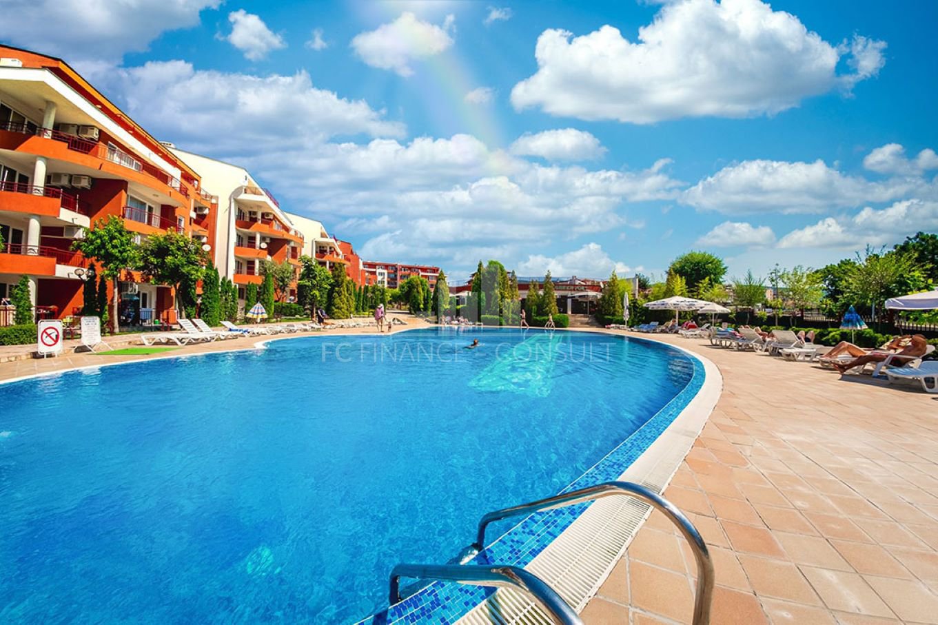 A vendre, magnifique appartement, situé dans la station balnéaire de Sunny Beach en Bulgarie. Type de bien: 1 chambre • Description du bien: hall d’entrée, séjour coin cuisine, chambre, salle de bains avec WC, balcon, terrasse • Dimensions: 66 m2 • Étage: 2/4 • Vue: jardin • 200 mètres plage • Parking: public • Montant des charges: 12,50 eur/m2/an • Crédit vendeur 7 ans: oui • Location possible par agence immobilière avec retour sur investissement garanti par un gestionnaire • La résidence est situé à 200 m de la plage.