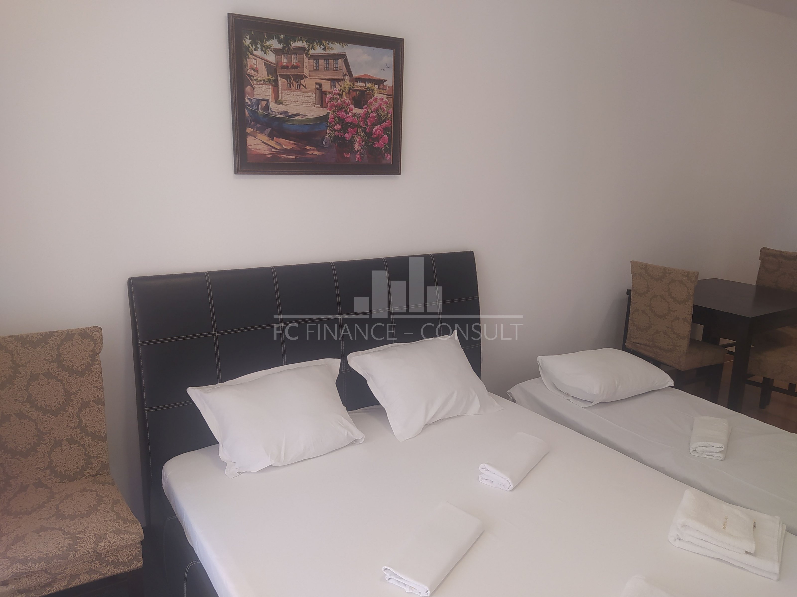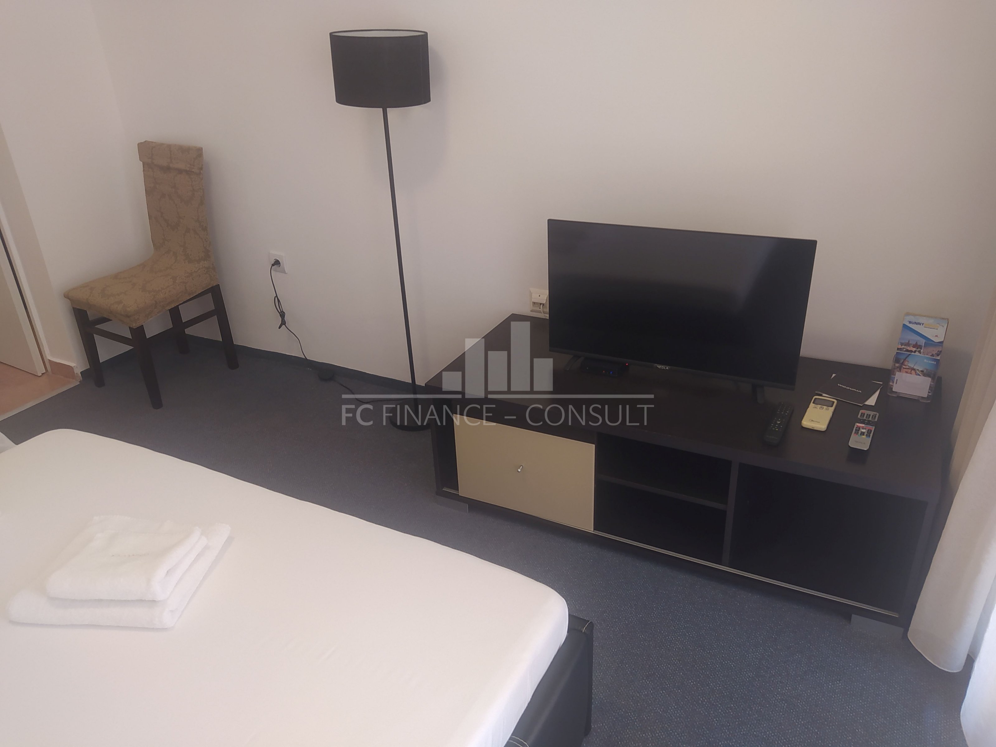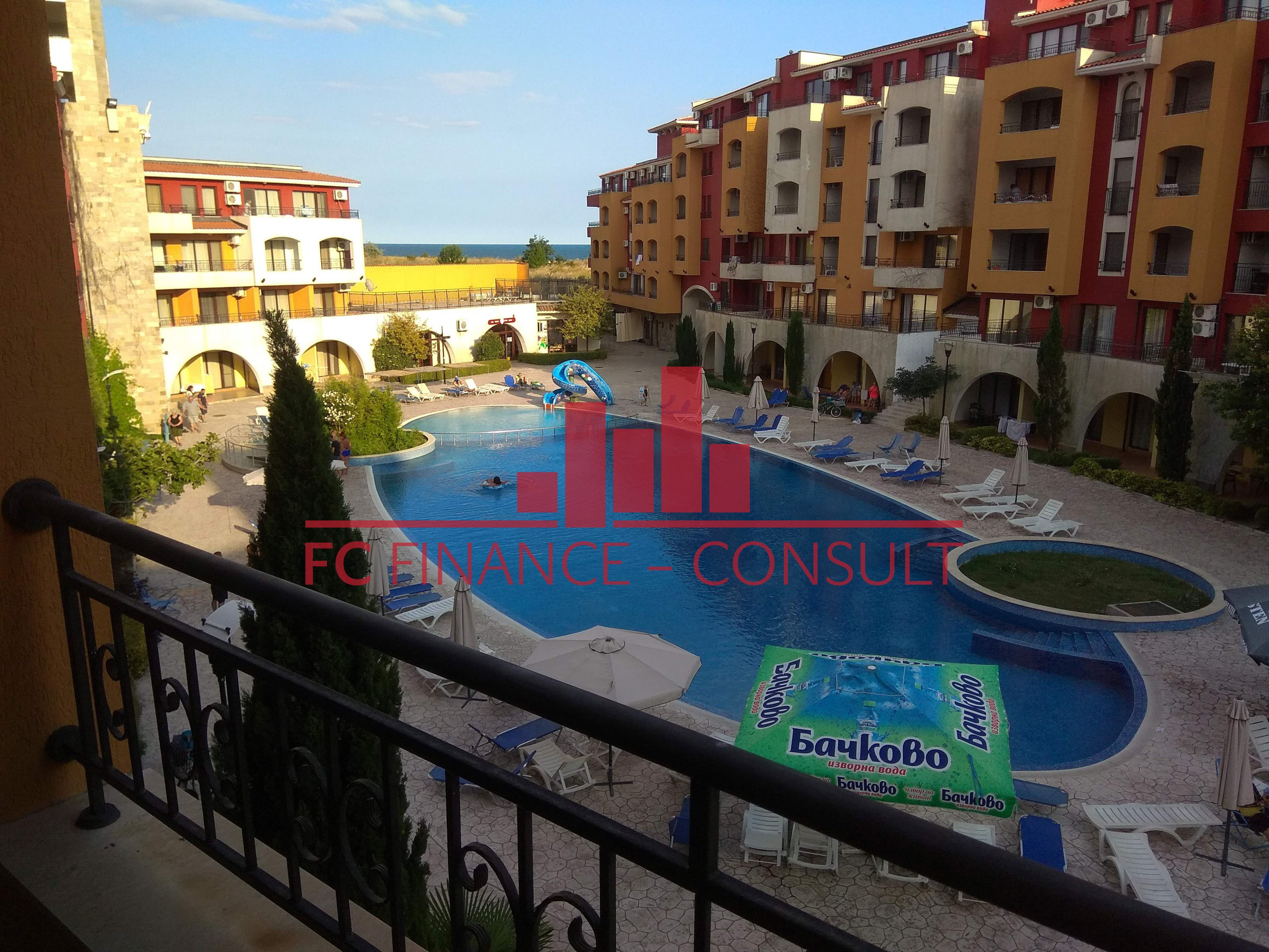 A vendre studio, front de mer, dans résidence 4*, située à Aheloy, Bulgarie. Type de bien: studio • Description du bien: hall d’entrée, séjour coin cuisine, salle de bains avec WC, balcon • Dimensions: 45 m2 • Étage: 2/5 • Vue: jardin • 10 mètres plage • Parking: privé et public • Montant des charges: 12 eur/m2/an • Crédit vendeur 5 ans: oui • Acompte mini: 20000 euro • Location possible par agence immobilière avec retour sur investissement garanti par un gestionnaire • La résidence est situé sur la plage • La résidence dispose des équipements suivants: d’une réception (heure d’ouverture fonction de la saison), d’une salle de fitness (dont plein air), de piscines sécurisés avec mise à disposition de chaises longues (dont une pour enfants), d’un squash, d’un sauna, d’un spa, d’un bain turc, d’un club pour enfants, d’une salle de massage, de terrains de jeux pour enfants, de terrains de sport, d’un centre de santé, d’un terrain de tennis, de babyfoot, d’un billard et d’une table de ping-pong • La résidence offre également les services suivants: un restaurant proposant une cuisine de type bulgare/européenne, de magasins d’alimentation et d’accessoires pour la plage, d’un service de location de voitures et d’un service de sécurité 24/24.