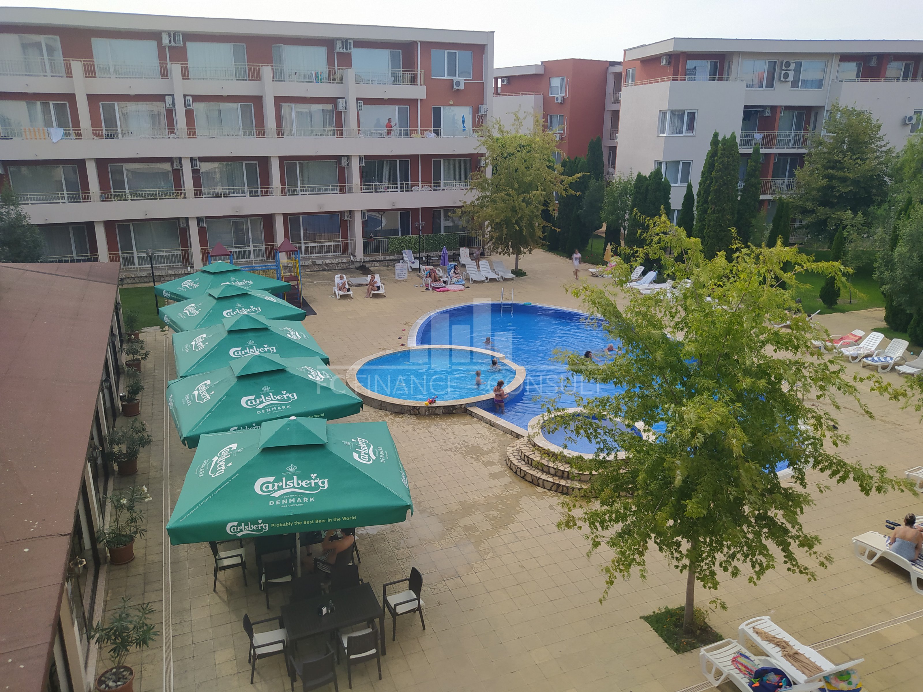 A vendre studio vue piscine et jardin dans la station balnéaire de Sunny beach en Bulgarie. Type de bien: studio • Description du bien: hall d’entrée, séjour coin cuisine, salle de bains avec WC, balcon • Dimensions: 40 m2 • Étage: 3/3 • Vues: jardin et piscine • 600 mètres plage • Parking: privé/public • Montant des charges: 13,50 eur/m2/an • Crédit vendeur 7 ans: non • Acompte mini: 100% • Location possible par agence immobilière avec retour sur investissement garanti par un gestionnaire • La résidence est situé à 600 m de la plage • La résidence dispose des équipements suivants: d’une réception (heure d’ouverture fonction de la saison), d’une salle de fitness (dont plein air), de piscines sécurisés avec mise à disposition de chaises longues (dont une pour enfants), d’un sauna, d’un spa, d’un club pour enfants, d’une salle de massage, de terrains de jeux pour enfants, de terrains de sport, d’un centre de santé, d’un terrain de tennis, de babyfoot, d’un mini-golf, d’un billard et d’une table de ping-pong • La résidence offre également les services suivants: un restaurant proposant une cuisine de type bulgare/européenne, de magasins d’alimentation et d’accessoires pour la plage, d’un service de location de voitures, d’un bureau de change et d’un service de sécurité 24/24.