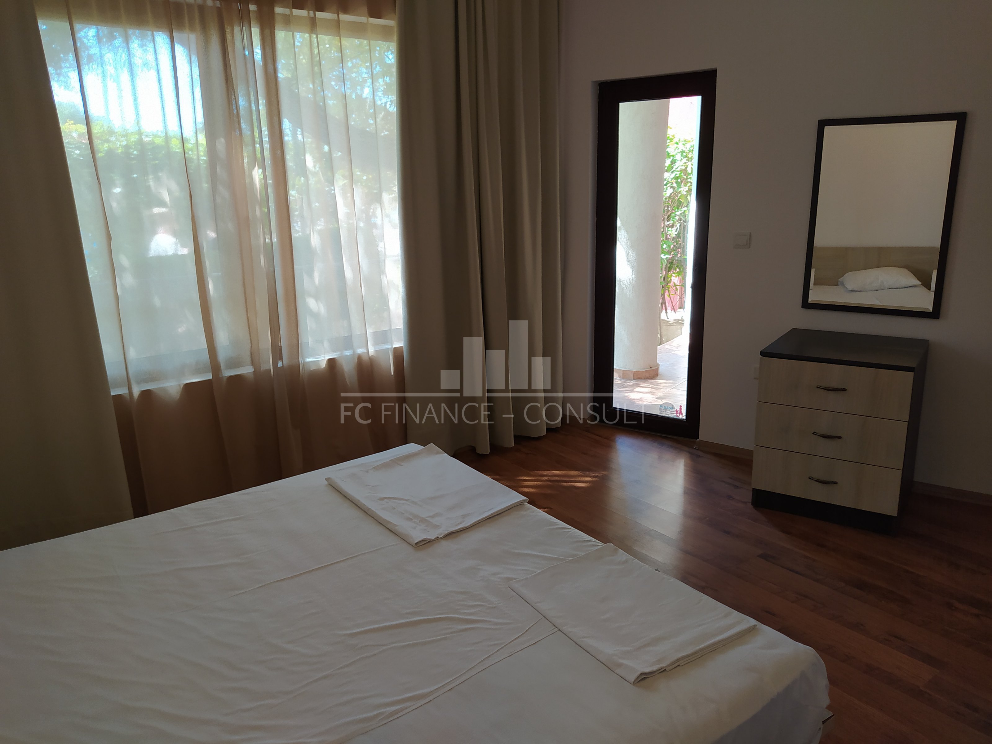 A vendre, appartement 3 pièces, front de mer, dans résidence 4*, située à Aheloy. Type de bien: 2 chambres • Description du bien: hall d’entrée, séjour coin cuisine, 2 chambres, salle de bains avec WC, terrasse • Dimensions: 112 m2 • Étage: rez-de-chaussée • Vues: jardin et piscine • 10 mètres plage • Parking: privé et public • Montant des charges: 12 eur/m2/an • Location possible par agence immobilière avec retour sur investissement garanti par un gestionnaire • La résidence est situé sur la plage • La résidence dispose des équipements suivants: d’une réception (heure d’ouverture fonction de la saison), d’une salle de fitness (dont plein air), de piscines sécurisés avec mise à disposition de chaises longues (dont une pour enfants), d’un squash, d’un sauna, d’un spa, d’un bain turc, d’un club pour enfants, d’une salle de massage, de terrains de jeux pour enfants, de terrains de sport, d’un centre de santé, d’un terrain de tennis, de babyfoot, d’un billard et d’une table de ping-pong • La résidence offre également les services suivants: un restaurant proposant une cuisine de type bulgare/européenne, de magasins d’alimentation et d’accessoires pour la plage, d’un service de location de voitures et d’un service de sécurité 24/24.