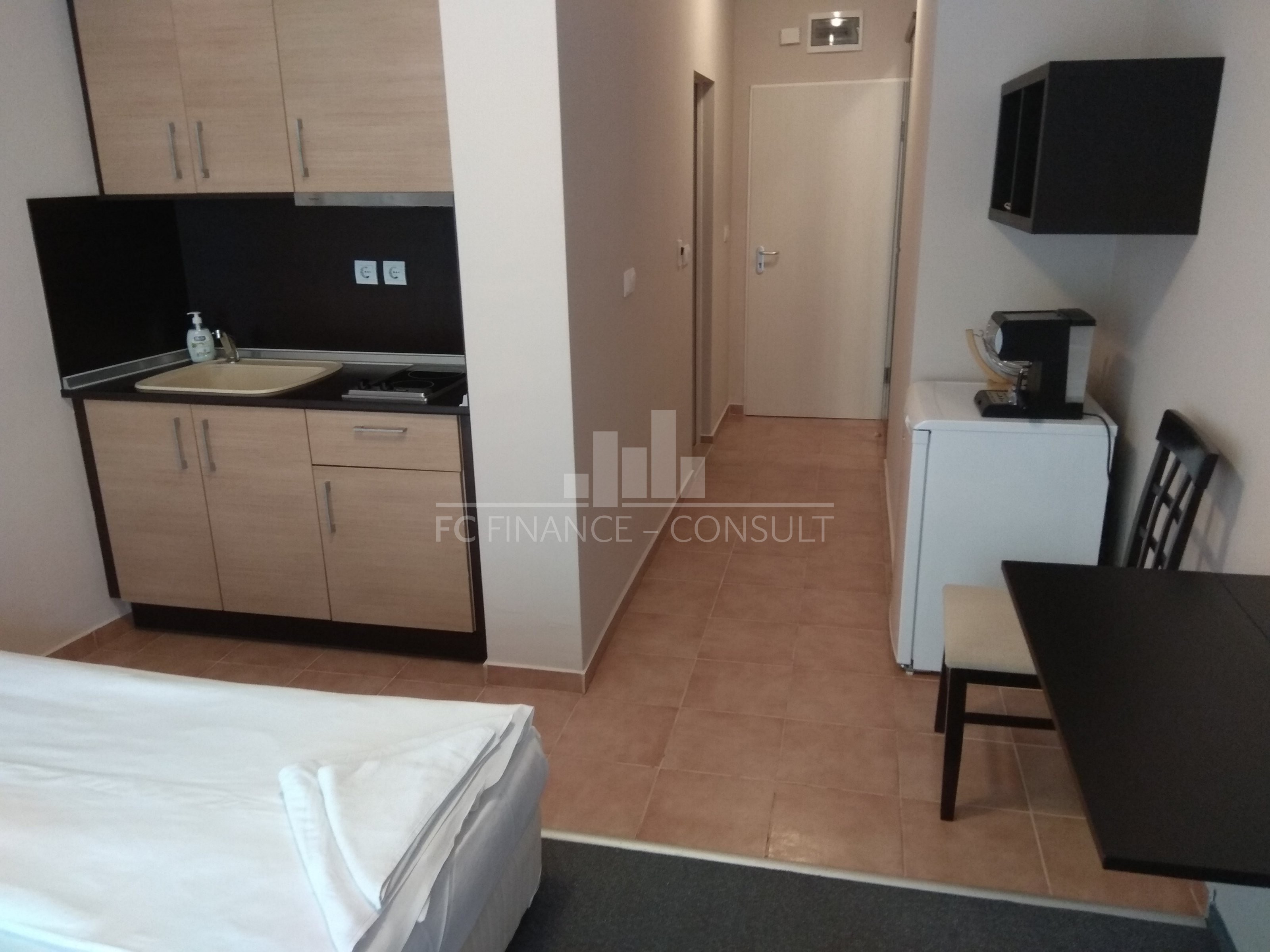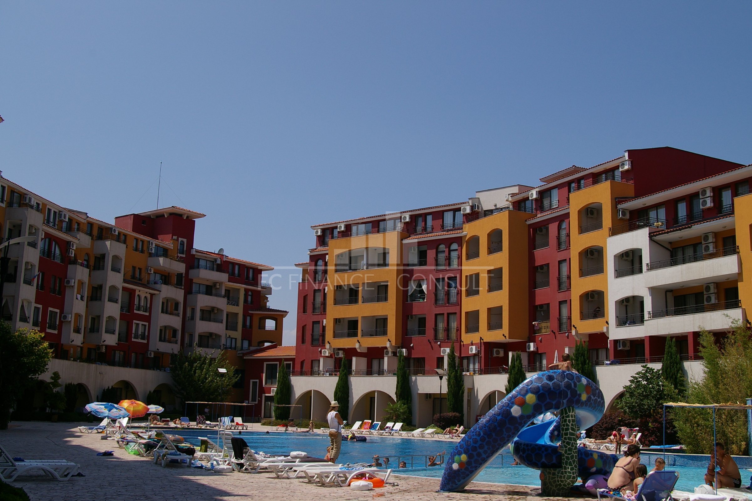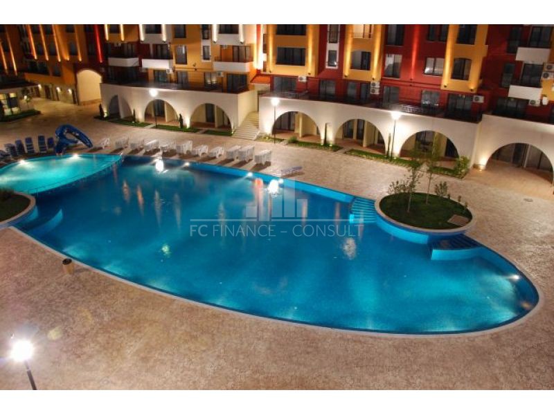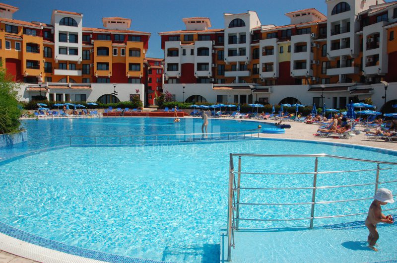 A vendre, studio, front de mer, dans résidence 4*, située à Aheloy, Bulgarie. Type de bien: studio • Description du bien: hall d’entrée, séjour coin cuisine, salle de bains avec WC, balcon • Dimensions: 35 m2 • Étage: 2/5 • Vues: jardin et rue • 10 mètres plage • Parking: privé et public • Montant des charges: 12 eur/m2/an • Crédit vendeur 3 ans: oui • Acompte mini: 50% • Location possible par agence immobilière avec retour sur investissement garanti par un gestionnaire • La résidence est situé sur la plage • La résidence dispose des équipements suivants: d’une réception (heure d’ouverture fonction de la saison), d’une salle de fitness (dont plein air), de piscines sécurisés avec mise à disposition de chaises longues (dont une pour enfants), d’un squash, d’un sauna, d’un spa, d’un bain turc, d’un club pour enfants, d’une salle de massage, de terrains de jeux pour enfants, de terrains de sport, d’un centre de santé, d’un terrain de tennis, de babyfoot, d’un billard et d’une table de ping-pong • La résidence offre également les services suivants: un restaurant proposant une cuisine de type bulgare/européenne, de magasins d’alimentation et d’accessoires pour la plage, d’un service de location de voitures et d’un service de sécurité 24/24.