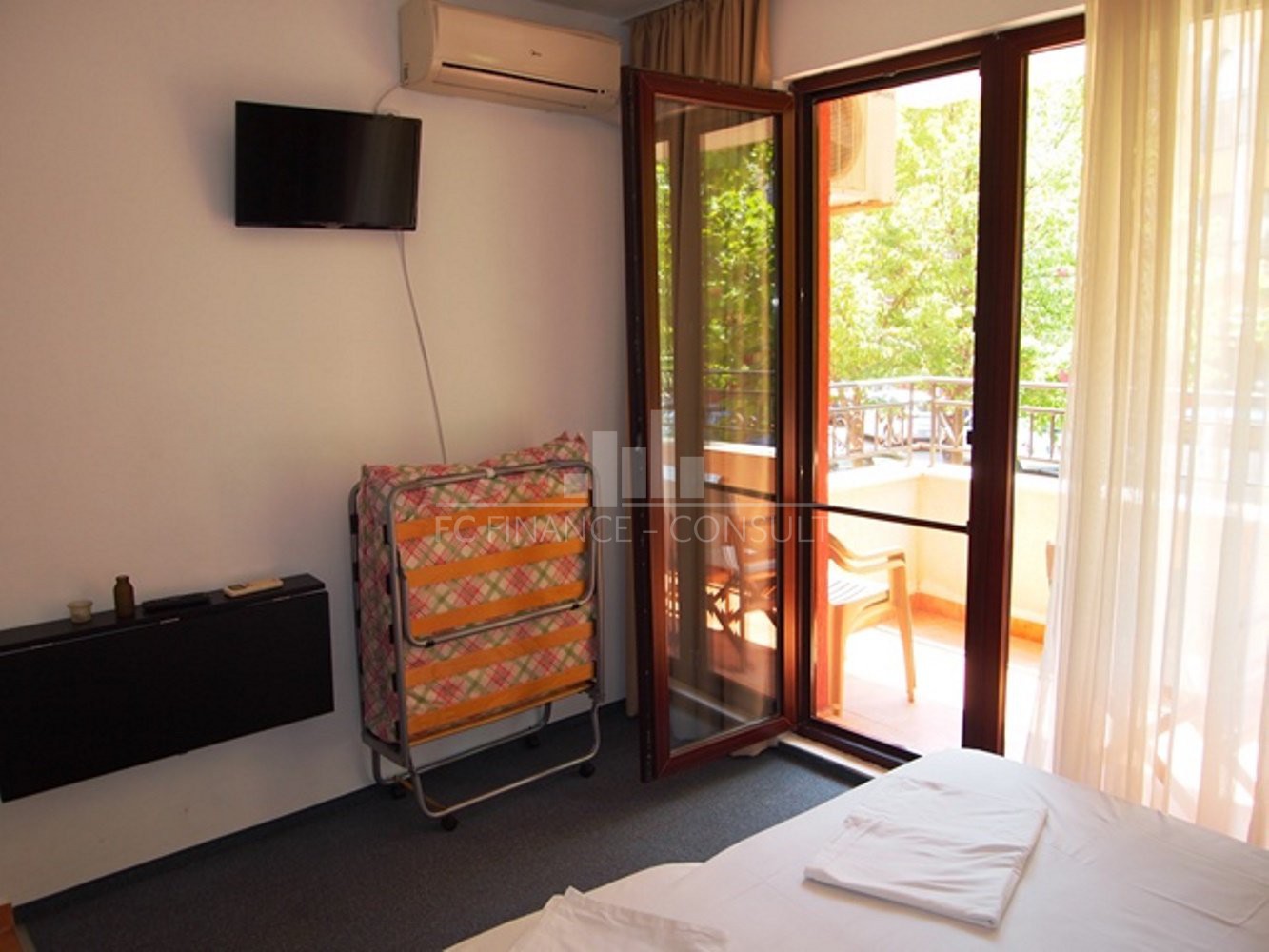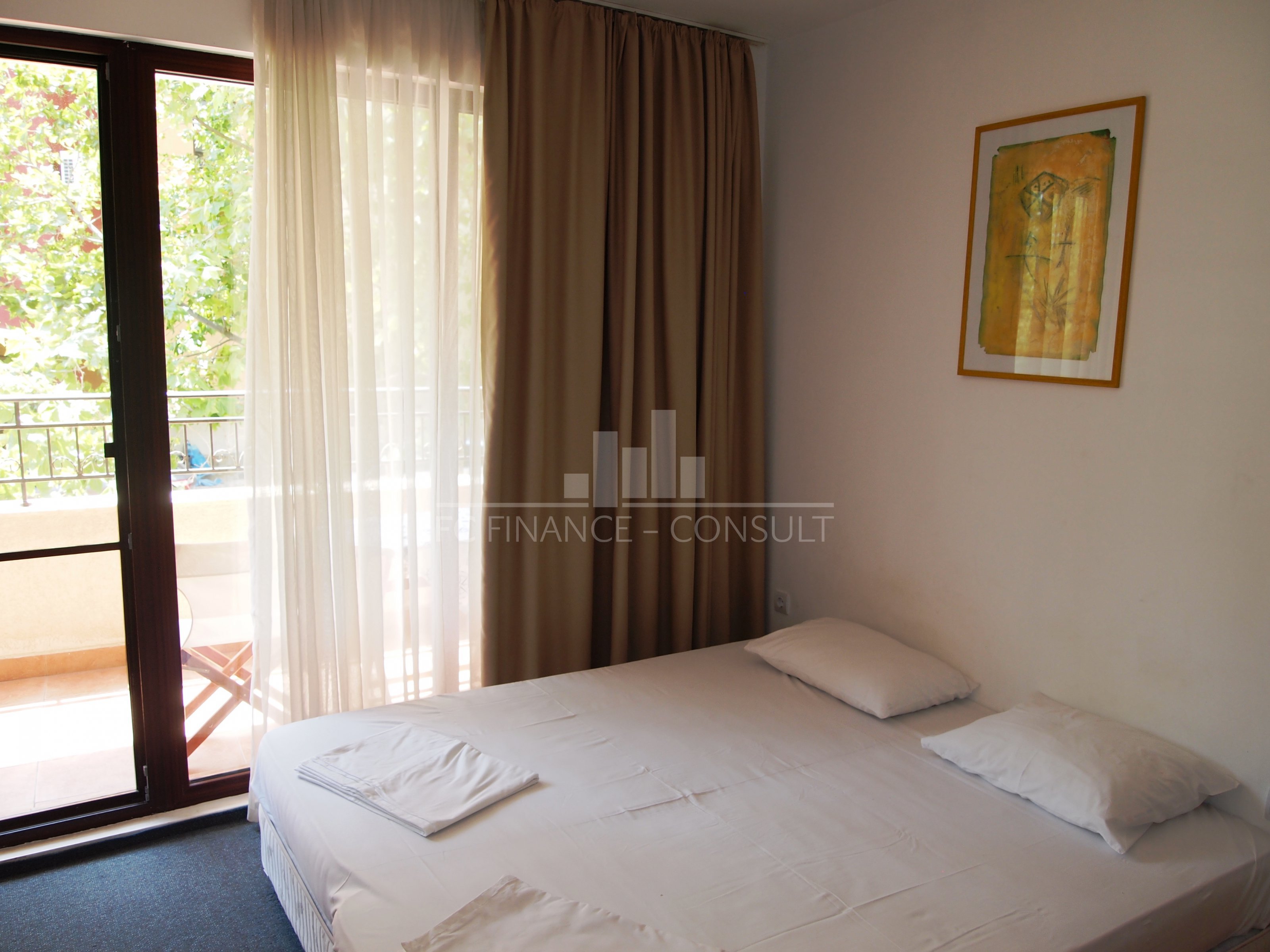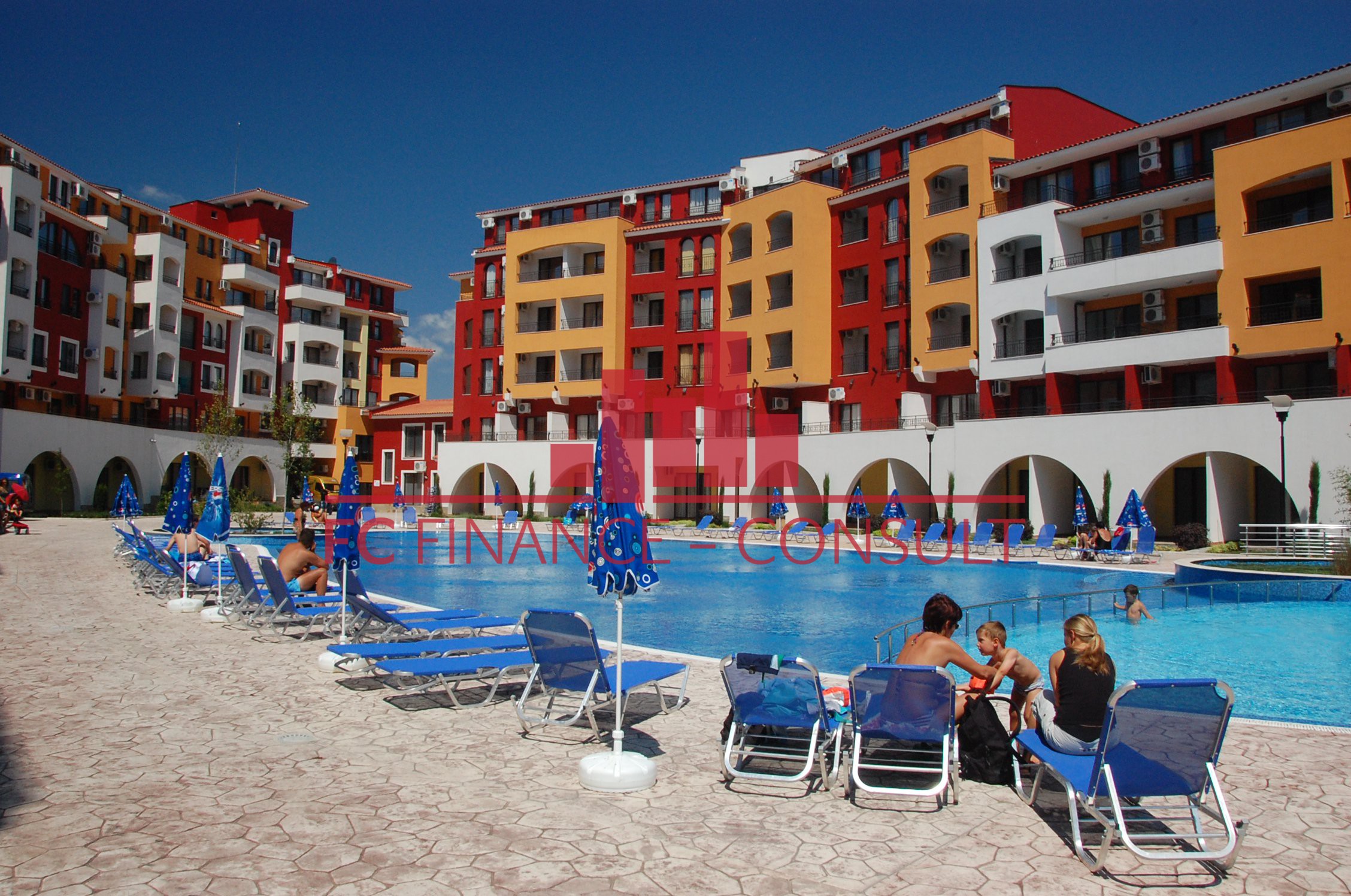 A vendre, studio, front de mer, dans résidence 4*, située à Aheloy, Bulgarie. Type de bien: studio • Description du bien: hall d’entrée, séjour coin cuisine, salle de bains avec WC, balcon • Dimensions: 35 m2 • Étage: 2/5 • Vues: jardin et rue • 10 mètres plage • Parking: privé et public • Montant des charges: 12 eur/m2/an • Crédit vendeur 3 ans: oui • Acompte mini: 50% • Location possible par agence immobilière avec retour sur investissement garanti par un gestionnaire • La résidence est situé sur la plage • La résidence dispose des équipements suivants: d’une réception (heure d’ouverture fonction de la saison), d’une salle de fitness (dont plein air), de piscines sécurisés avec mise à disposition de chaises longues (dont une pour enfants), d’un squash, d’un sauna, d’un spa, d’un bain turc, d’un club pour enfants, d’une salle de massage, de terrains de jeux pour enfants, de terrains de sport, d’un centre de santé, d’un terrain de tennis, de babyfoot, d’un billard et d’une table de ping-pong • La résidence offre également les services suivants: un restaurant proposant une cuisine de type bulgare/européenne, de magasins d’alimentation et d’accessoires pour la plage, d’un service de location de voitures et d’un service de sécurité 24/24.