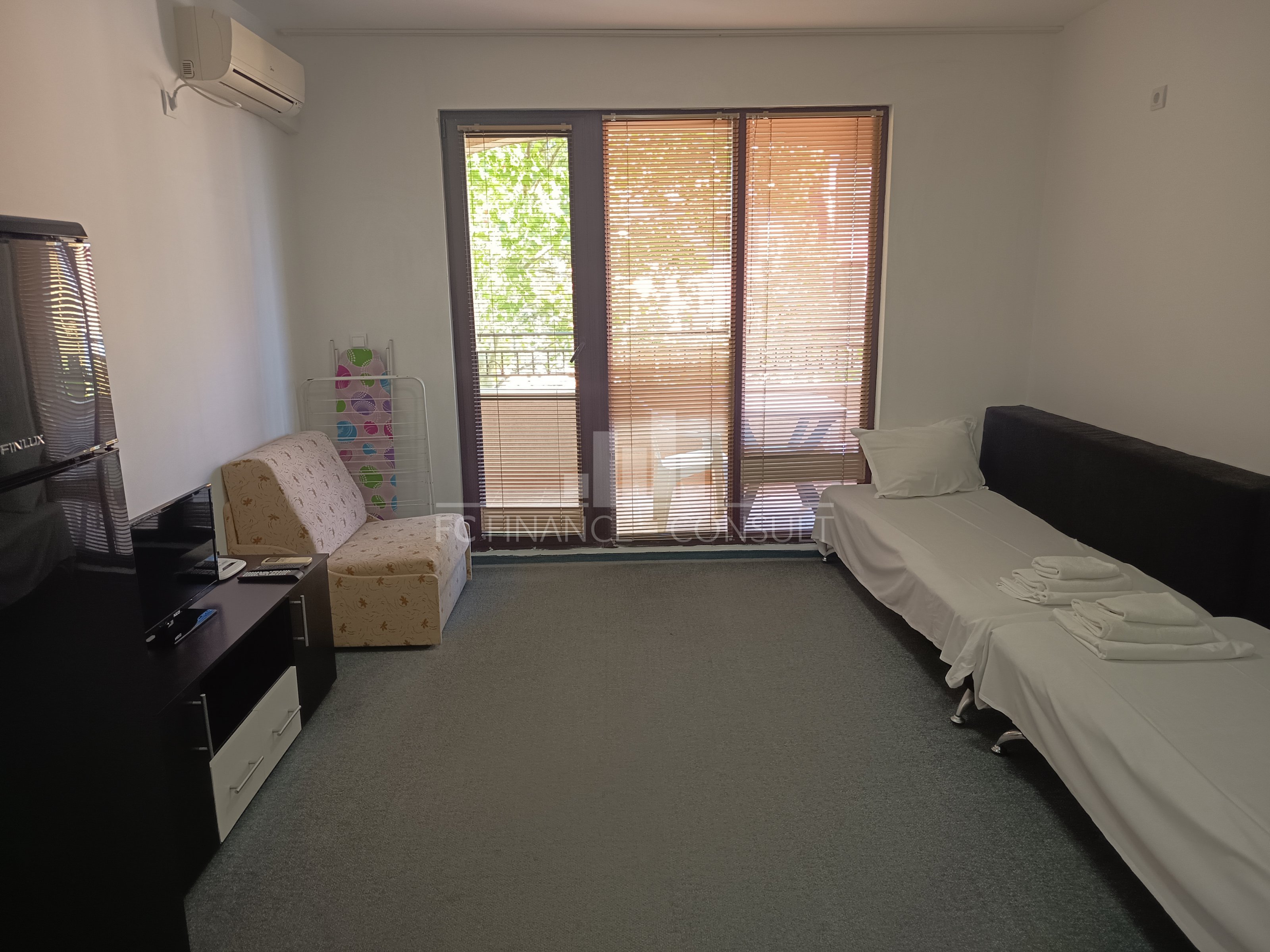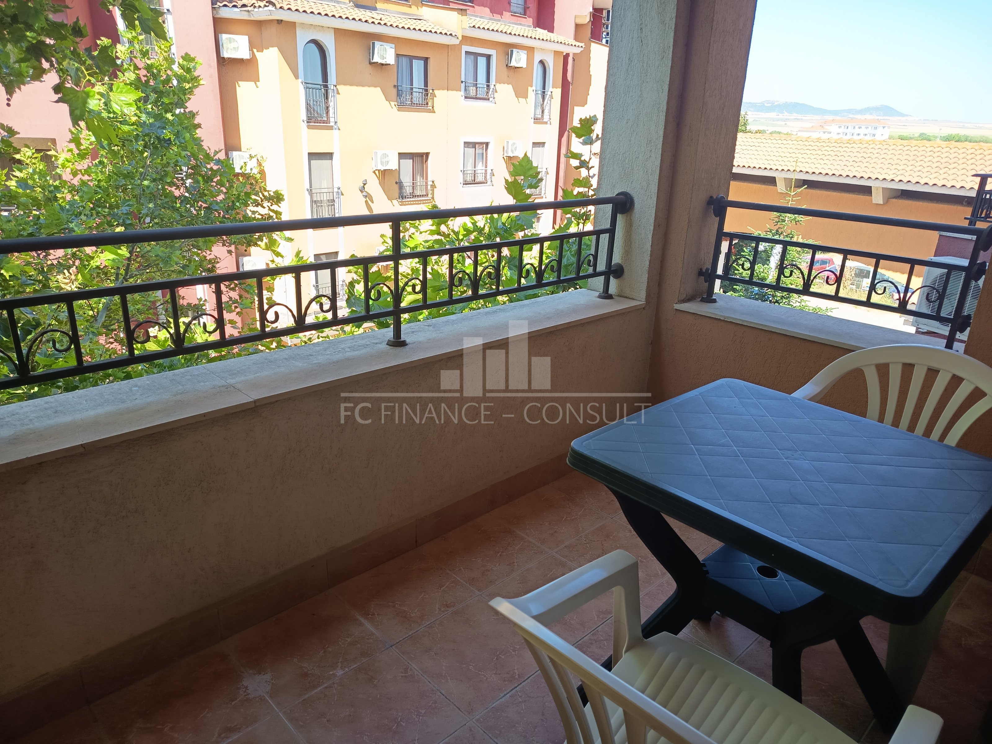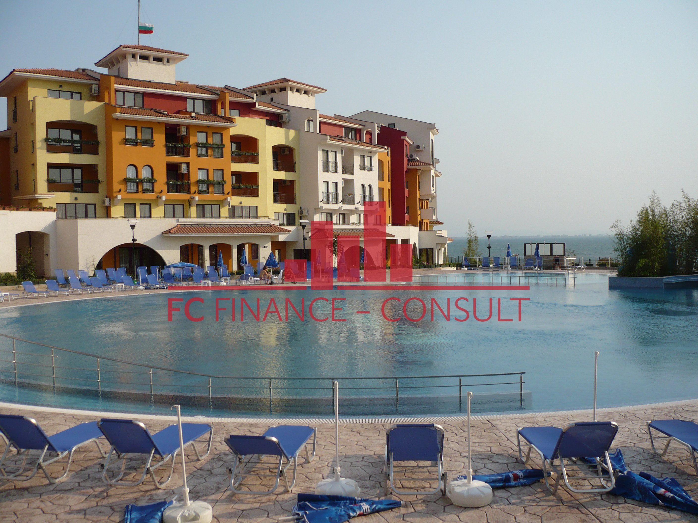 A vendre, studio, front de mer, dans résidence 4*, située à Aheloy, Bulgarie. Type de bien: studio • Description du bien: hall d’entrée, séjour coin cuisine, salle de bains avec WC, balcon • Dimensions: 48 m2 • Étage: 3/5 • Vues: vue mer, piscine et jardin • 10 mètres plage • Parking: privé et public • Montant des charges: 12 eur/m2/an • Crédit vendeur 5 ans: oui • Acompte mini: 20000 euro • Location possible par agence immobilière avec retour sur investissement garanti par un gestionnaire • La résidence est situé sur la plage • La résidence dispose des équipements suivants: d’une réception (heure d’ouverture fonction de la saison), d’une salle de fitness (dont plein air), de piscines sécurisés avec mise à disposition de chaises longues (dont une pour enfants), d’un squash, d’un sauna, d’un spa, d’un bain turc, d’un club pour enfants, d’une salle de massage, de terrains de jeux pour enfants, de terrains de sport, d’un centre de santé, d’un terrain de tennis, de babyfoot, d’un billard et d’une table de ping-pong • La résidence offre également les services suivants: un restaurant proposant une cuisine de type bulgare/européenne, de magasins d’alimentation et d’accessoires pour la plage, d’un service de location de voitures et d’un service de sécurité 24/24.
