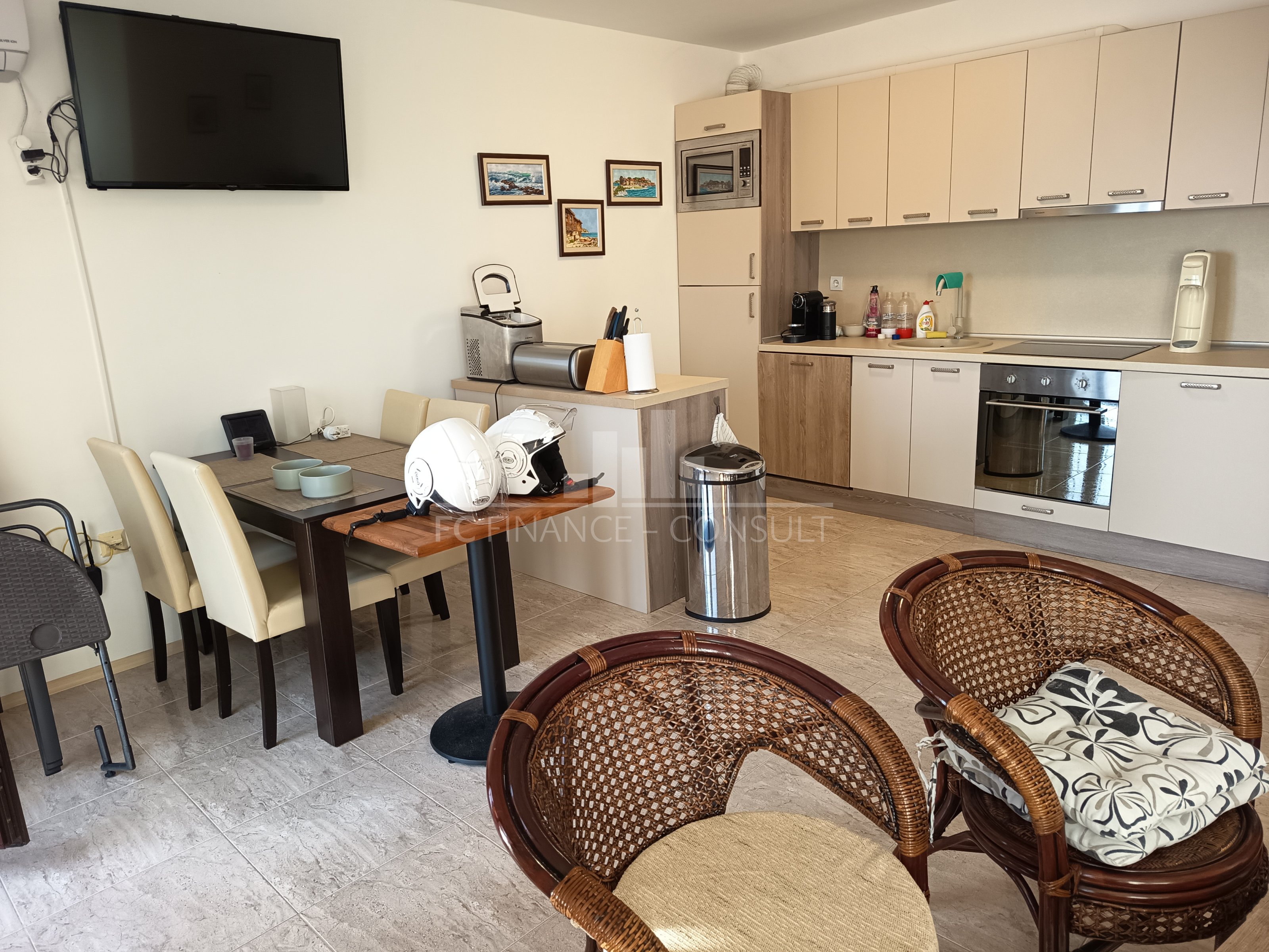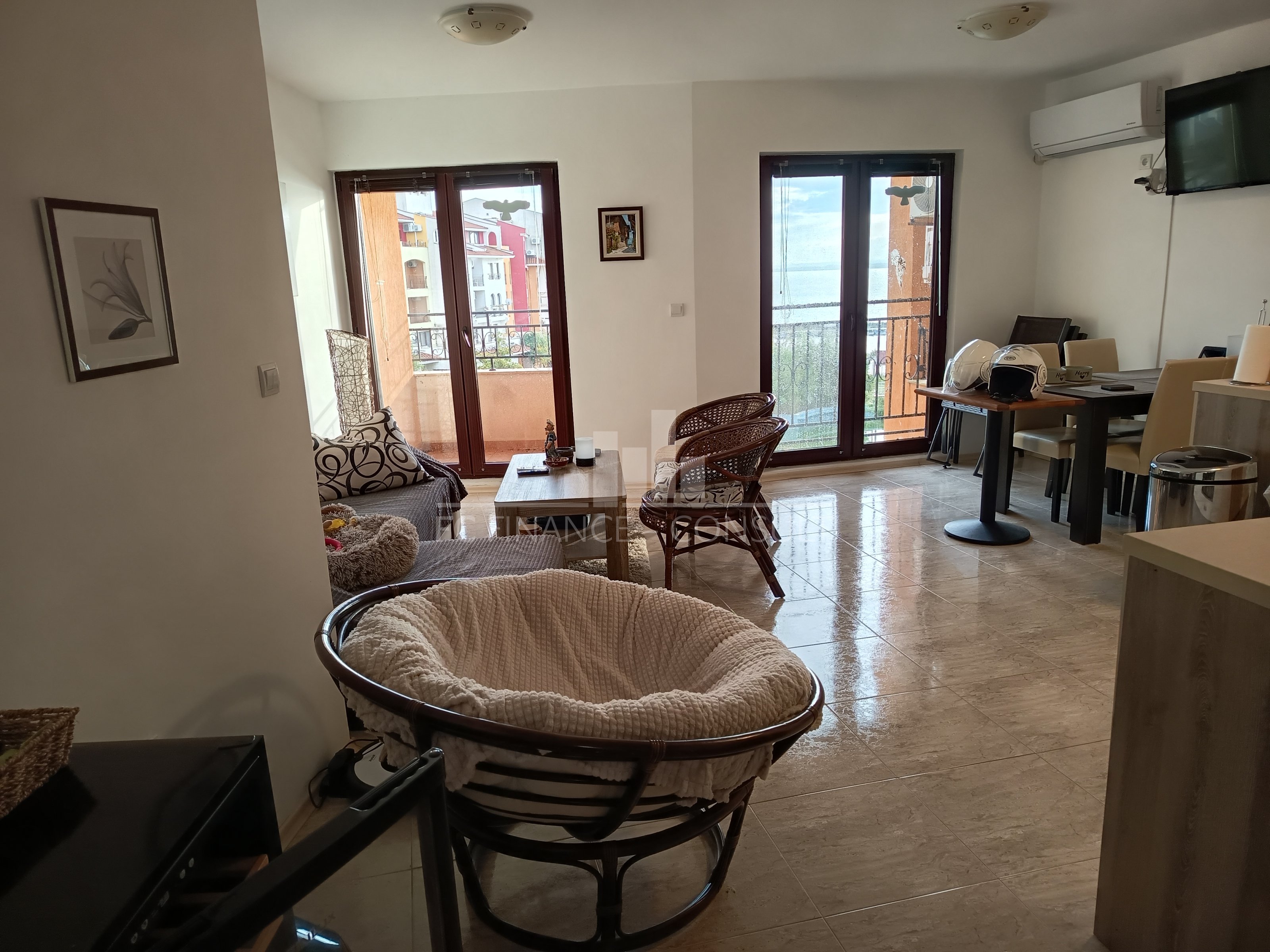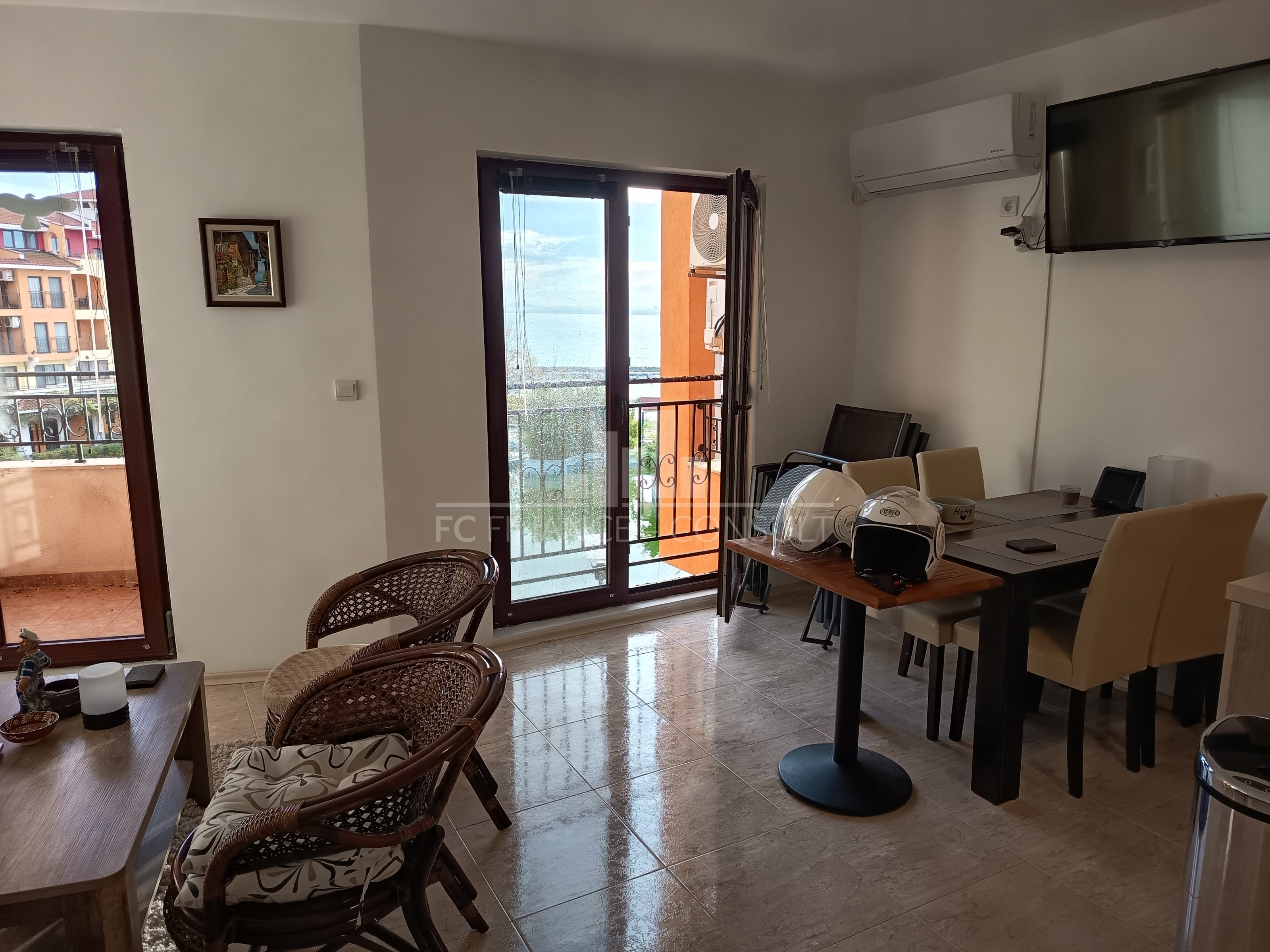 Cet appartement de trois pièces avec kitchenette offre de superbes vues sur la mer, la piscine et la marina. D’une surface habitable de 90 m², il est situé dans un complexe de vacances privé et entièrement équipé, au 3ᵉ étage d’un immeuble de cinq étages. Le complexe se trouve dans la zone prisée d’Aheloy, dans la baie de Burgas, à proximité des célèbres boues thérapeutiques des salines de Pomorié. Encore relativement méconnue, cette station balnéaire échappe au tourisme de masse et offre un cadre paisible sur la côte de la mer Noire. La résidence est située à environ 15 minutes en voiture de l’aéroport de Burgas et bénéficie d’un accès direct à une magnifique plage de sable. La plage comprend également une petite marina, où sont amarrés des yachts et des bateaux de pêche. Les résidents et les visiteurs peuvent profiter de nombreux équipements, notamment quatre restaurants, de nombreux cafés et bars, deux piscines avec bars aquatiques, un centre sportif, des courts de squash, un centre de bien-être et SPA, des services de massage, un cabinet de médecin généraliste, un supermarché ainsi que plusieurs petites boutiques proposant une large gamme de produits. Une connexion Internet et la télévision par câble sont disponibles dans chaque appartement. Ce bien convient aussi bien à un usage personnel de villégiature qu’à une opportunité d’investissement locatif. Il s’agit d’une occasion rare de résidence estivale dans un environnement magnifique et paisible.